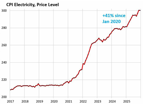 Durante los años 2021-2025, el PPI para la construcción no residencial aumentó un 41%. Con el gasto en construcción de centros de datos con un alza del 344% durante el mismo período, el auge al rojo vivo del gasto en construcción no es resultado de la inflación, sino de la manía de inversión en IA.