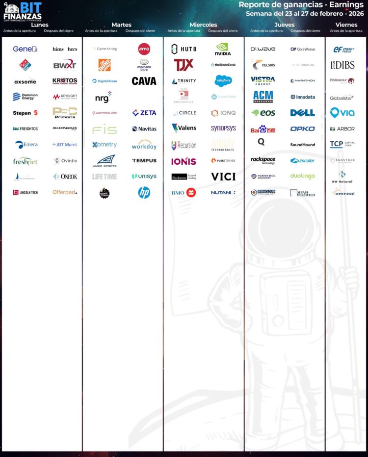 Calendario de Earnings – Semana del 23 al 27 febrero 2026