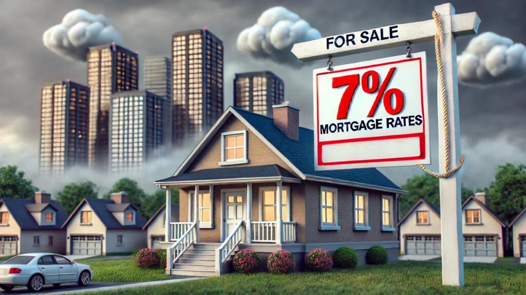 La tasa hipotecaria a 30 años, una opción popular para la financiación de viviendas en EE. UU., ha estado rondando el 7% durante los últimos meses. Retrocedió después de alcanzar el 8% por primera vez desde el año 2000 a finales del año pasado. Pero eso sigue siendo un gran salto desde los niveles por debajo del 3% vistos en los primeros años de la pandemia, lo que provocó una avalancha de ventas y refinanciamientos en el mercado de la vivienda.