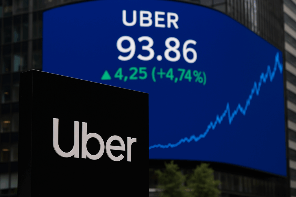 Uber Technologies Inc. logró un nuevo récord al cotizar sus acciones en 93.86 dólares. Este aumento refleja un fuerte impulso, con un crecimiento de casi 50 % en lo que va del año.